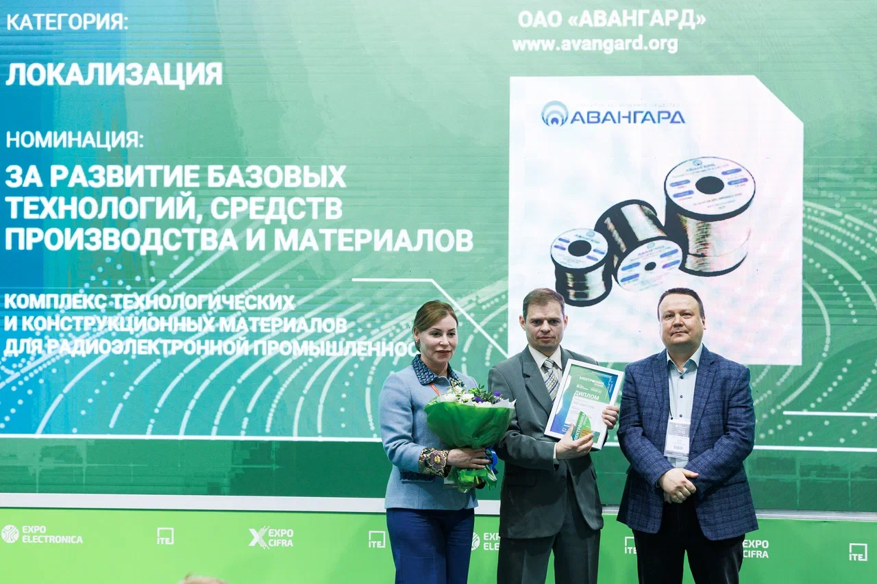 ОАО «Авангард» удостоено специальной награды в номинации «За развитие базовых технологий, средств производства и материалов». В рамках номинации на конкурс был представлен комплекс технологических и конструкционных материалов, формирующих основу современной электронной индустрии.